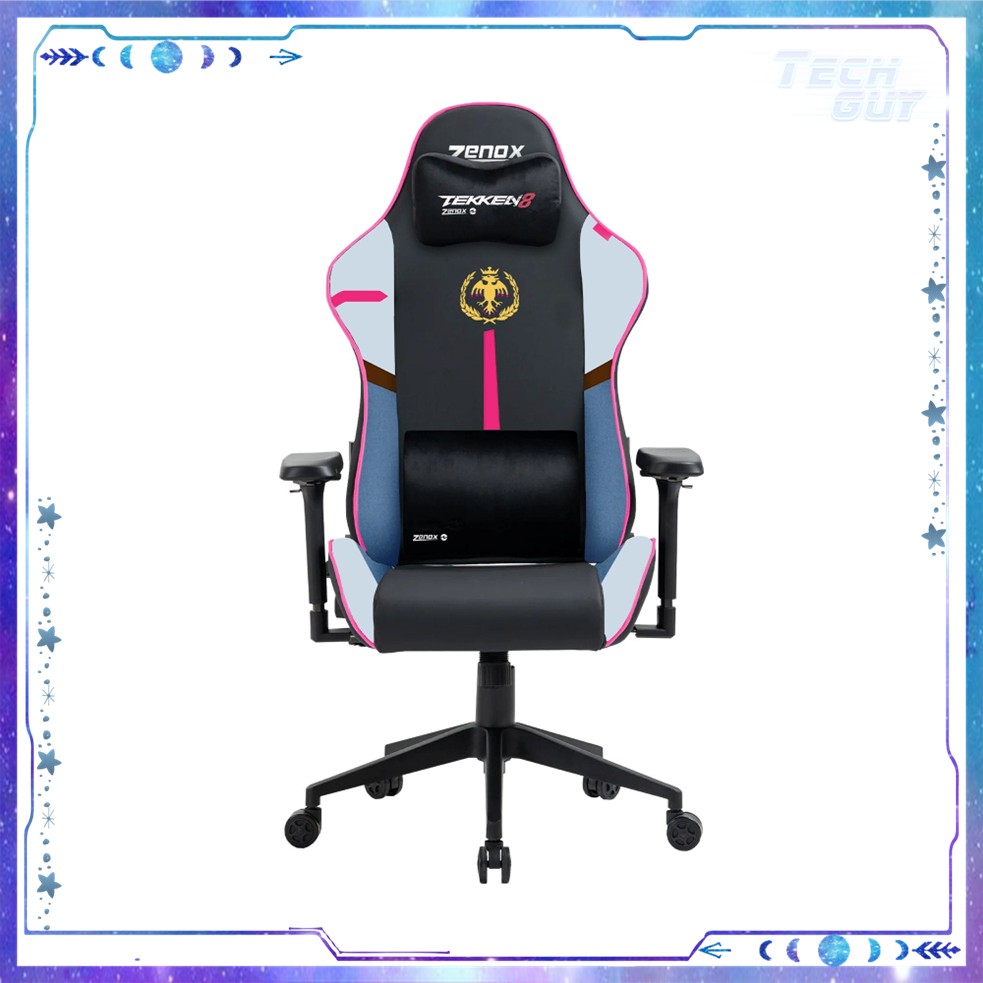 Zenox(土星 Mk-2)鐵拳 8 風間飛鳥限量特別版電競椅以 Saturn Mk-2 遊戲椅為基礎,保留原有鋁合金框架、TUV 認證 4 級氣壓升降及高密度座墊結構,再加入 Tekken 8 Asuka Kazama 主題配色與圖案,對鐵拳粉絲而言兼具收藏價值與實用舒適度。 椅身採用磨砂 PU 皮面及光滑針織面料組合,具備防刮、一定程度防水及易清潔特性,同時比全皮面更透氣,適合香港長時間使用及潮濕氣候。